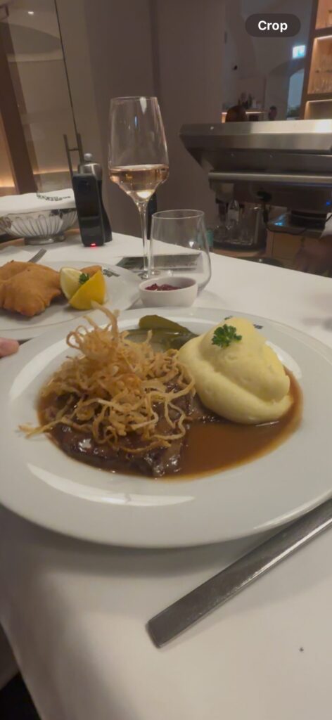 Now the food. Our server Ivan recommended the schnitzel and a steak main to share and he was right. Some of the best schnitzel we have had in Austria. It was crispy, golden, and enormous. The steak with mashed potatoes was just as good. Ivan’s dessert recommendations were equally spot on. Every suggestion he made was a winner, and the whole meal felt like being looked after rather than just served.